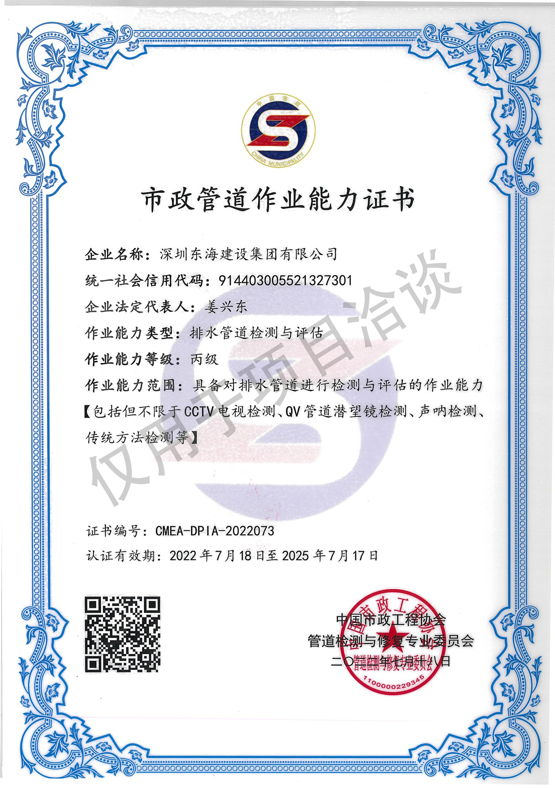 市政管道作業能力證書
